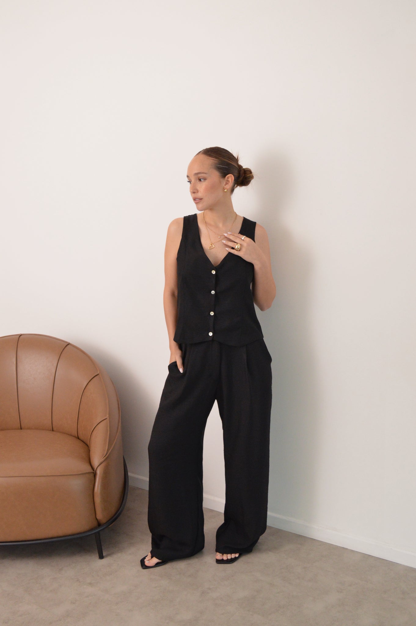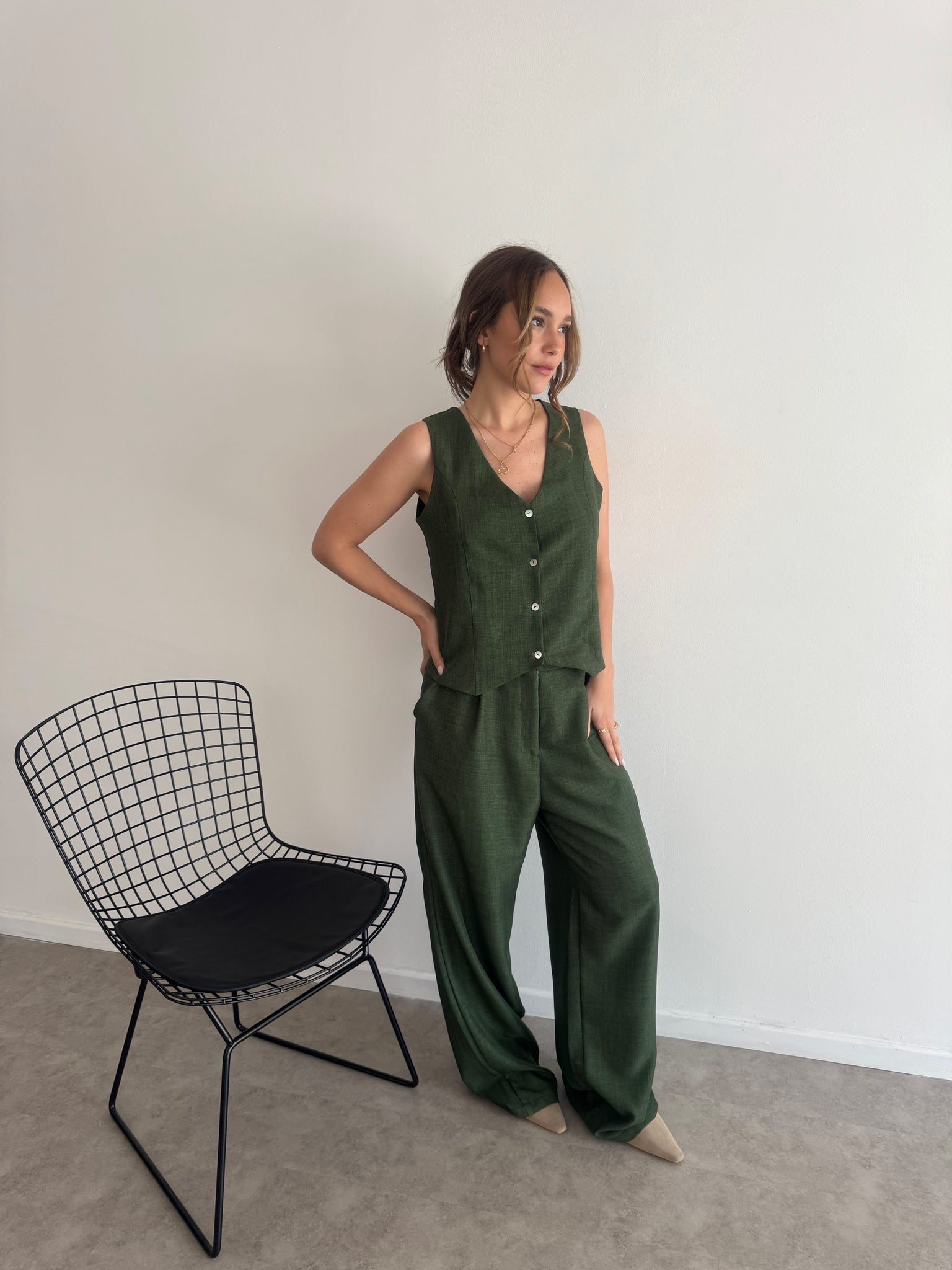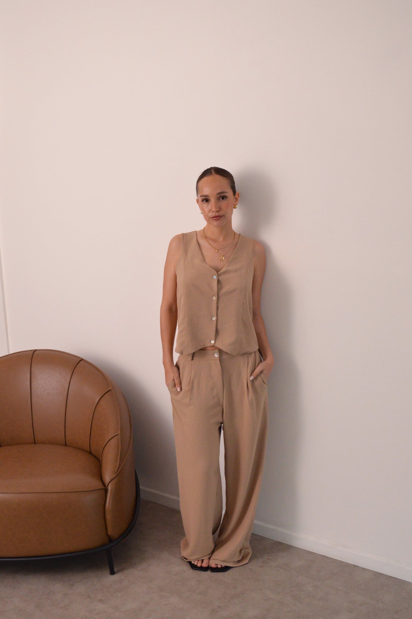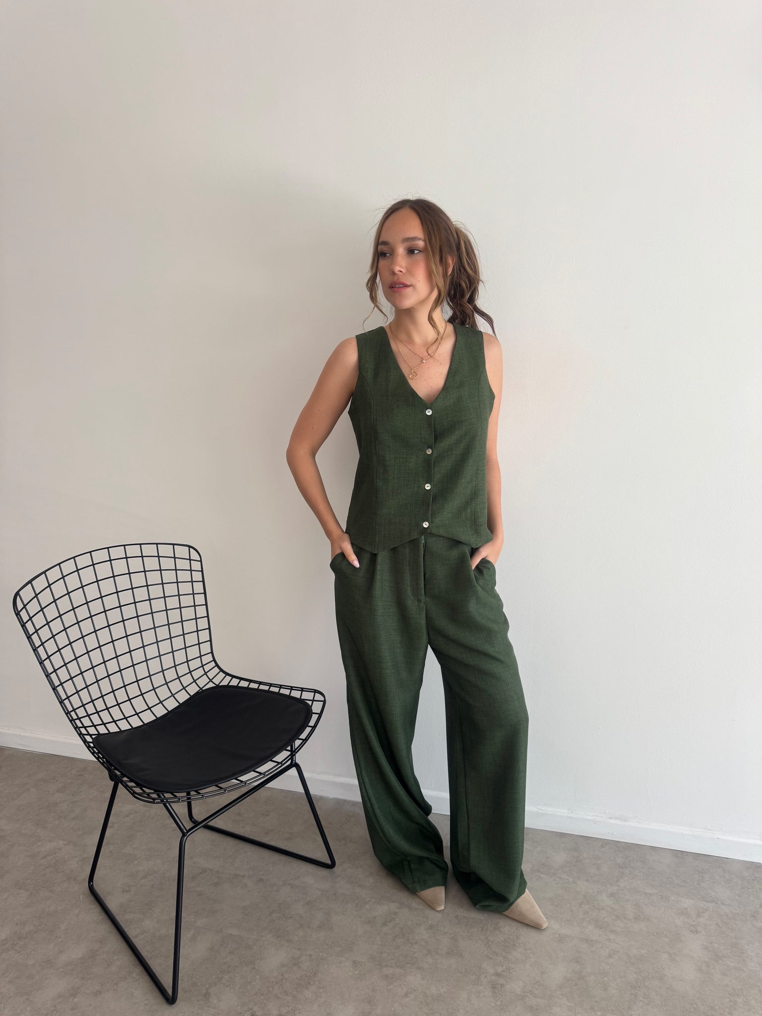 Material: creppe.Medidas: pueden variar según la prenda.